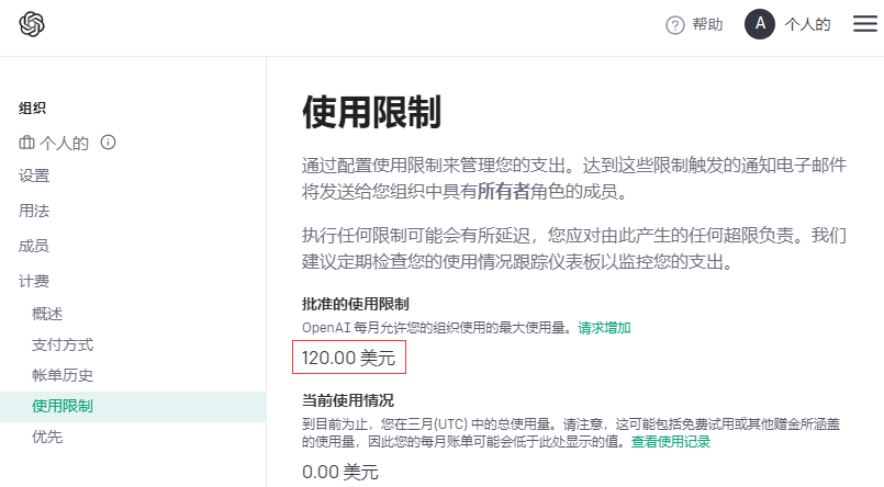 查阅资料才知道,OpanAI 在注册后会赠送 5 美元的体验资格,只要 API 调用就会花费余额,5 美元大概能回复 100 万字的内容,等余额用尽后就会提示服务器限流,无法继续使用,只能充值了。