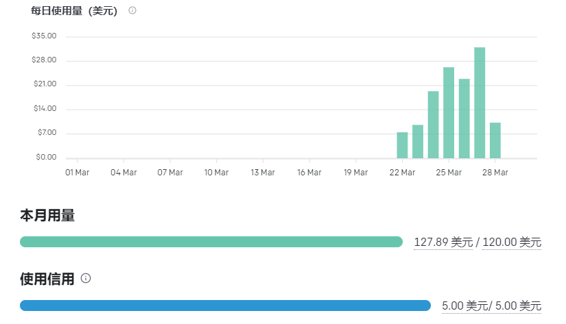 好吧,又一周的时间,120 美元的额度也用尽了 - -。