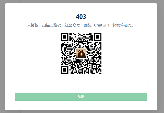 验证功能是需要访客输入验证码,验证通过后才能使用,在chatgpt-web/service/.env文件中,将AUTH_SECRET_KEY设置一个访问权限秘钥,效果如下:
