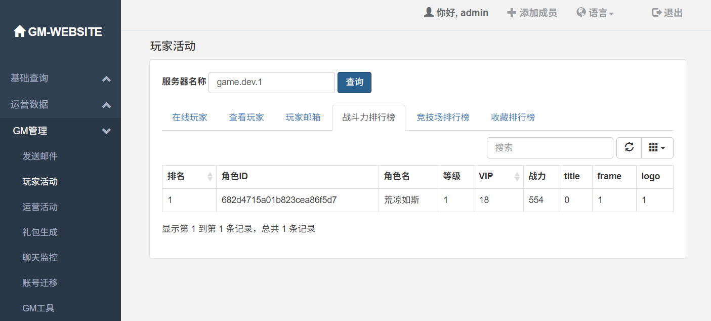 游戏还提供了运营后台,链接:http://IP:963,默认账号:admin,默认密码:qq123456.。,运营后台主要是查看游戏相关数据,配置活动,还有 GM 工具等。