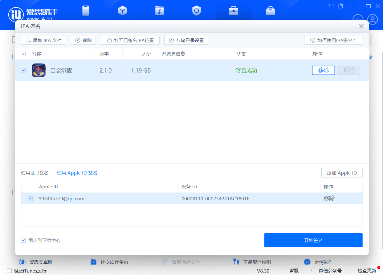 替换后,需要进行签名,建议使用爱思助手签名,或使用巨魔签名也是没问题的,两种方式我都试过。