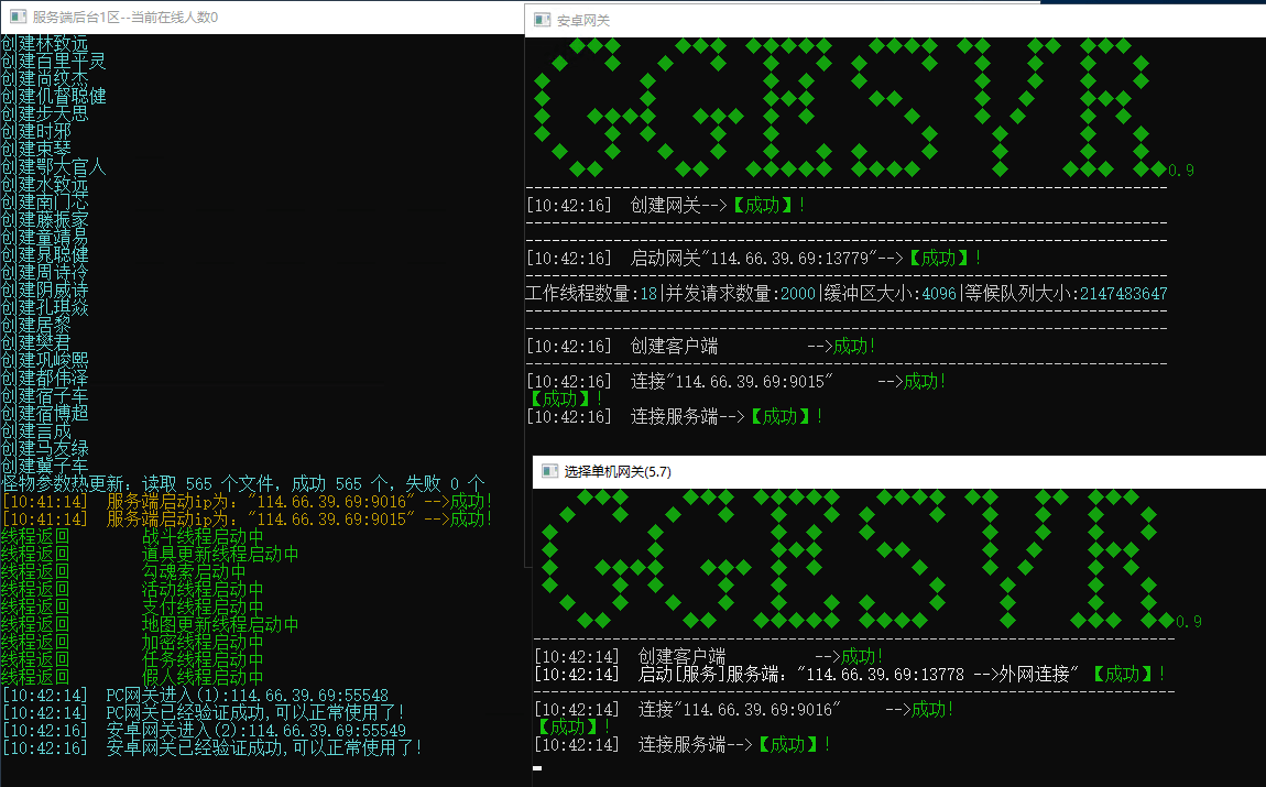 服务端配置完毕,我们就可以启动游戏啦,分别按照以下顺序启动对应菜单即可: