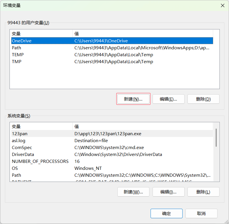 环境变量界面,点击新建按钮,上下两个新建都可以哈。