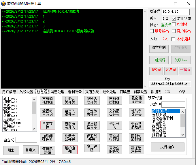 这个网关工具功能十分强大,可以给玩家充值,定制装备,还有一些副本管理等等。