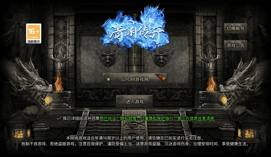 我架设的《新清渊传奇》公益服请关注我的公众号 echeverra, 发送“新清渊传奇”获取游戏链接,游戏内直接点击充值即可充值成功!游戏大礼包激活码发送“新清渊传奇GM”免费获取,游戏长期维护,快来体验一下吧。