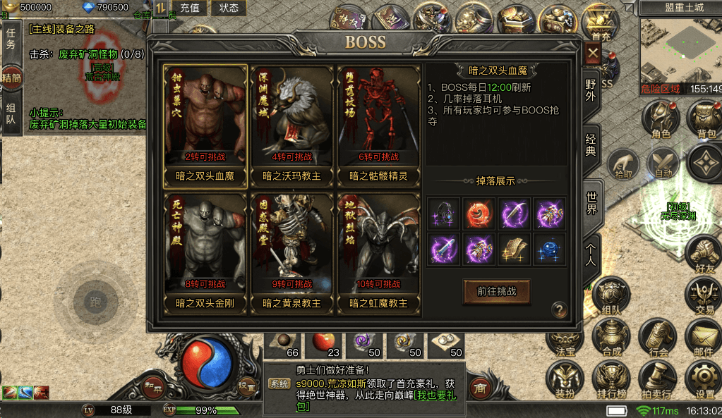这次给大家带来的是无敌版的《新清渊传奇》,H5、安卓、PC三端互通,几乎没有 BUG,游戏对画面进行 1:1 高清重制,高度还原 1.76 复古传奇经典场景和玩法,快来和兄弟们一起组队争霸沙城吧!