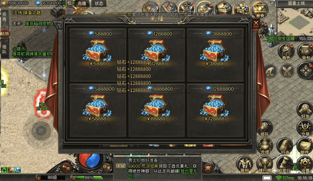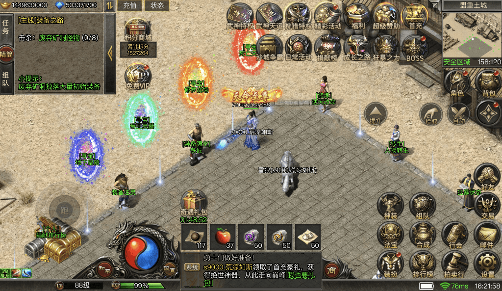 游戏我已经做了资源外置,所以应该不会太卡,游戏充值界面直接点击就可以充值成功,不需要后台,超级方便。三端互通,满足多种需求。同时这个服务器还有三年到期,也就是说这个游戏我会至少开三年哈~